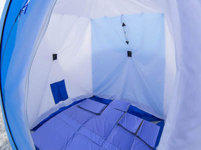 Изготовленные на новейшем оборудовании и по передовым технологиям, полы в палатку зимой не скользят, кроме этого обладают теплоизоляционным эффектом. В палатках из прочных тентовых тканей можно укрыться от пронизывающего ветра, а наличие специального отверстия под лунку избавит покидать пределы палатки во время всего процесса ловли рыбы. Кроме этого, заядлые рыбаки и новички обязательно оценят следующие достоинства при эксплуатации: