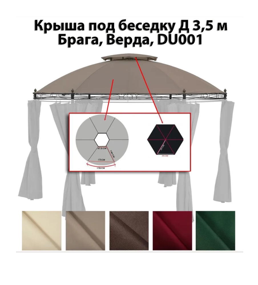 Краткое описание «Тент-крыша для беседки Верда, Брага /диаметр 3.5м»