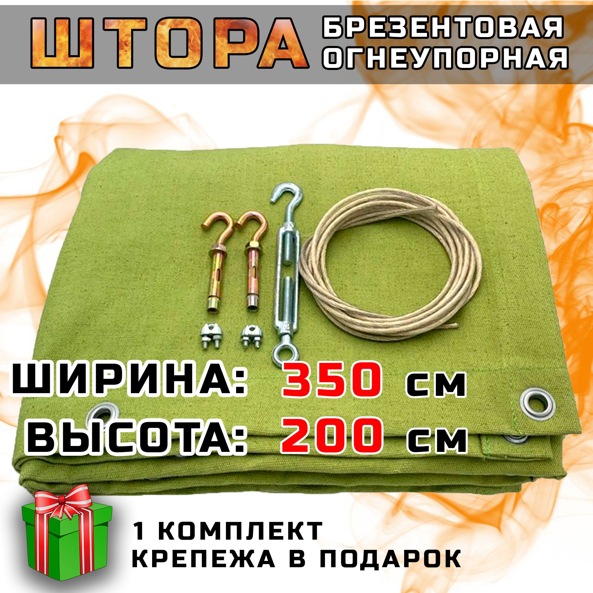 Брезентовая штора огнеупорная для гаража, усиленная, высота 200 см, ширина 350
