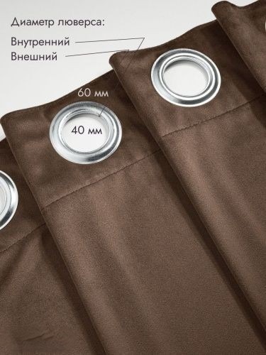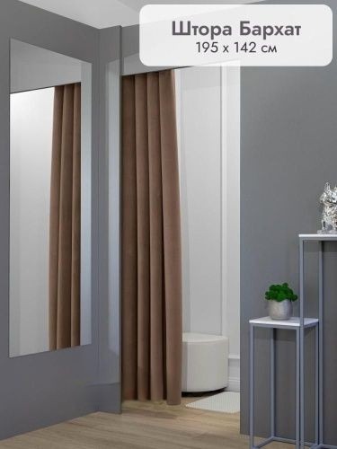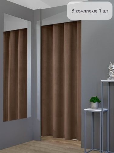 Краткое описание «Штора для примерочной и дома на люверсах бархатная цвет коричневый, 1 шт»