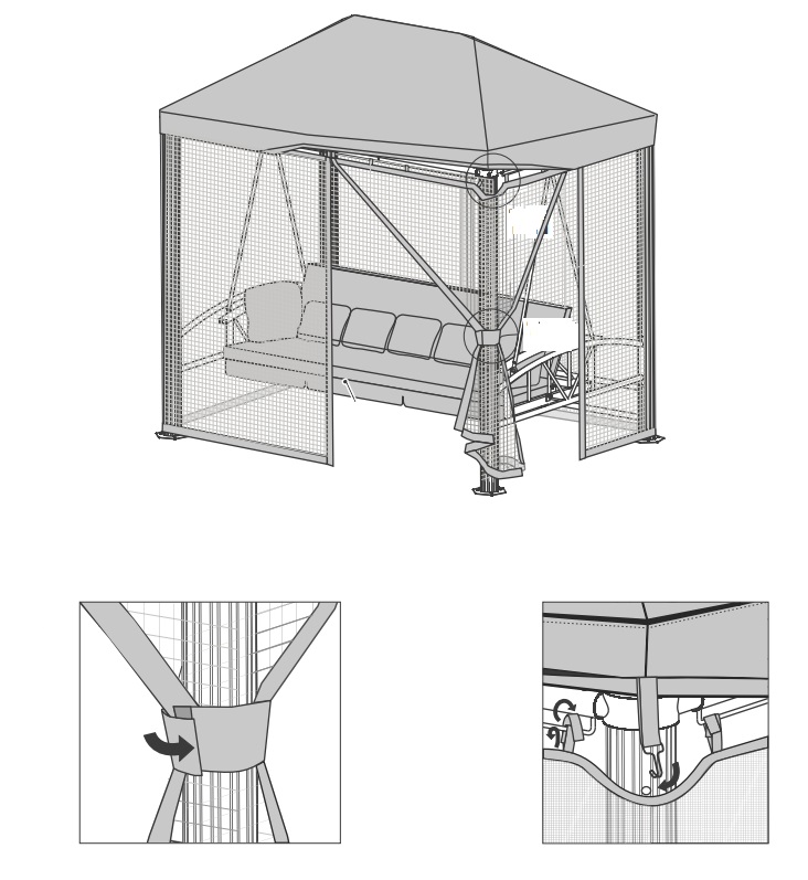 Общий размер качели по каркасу ( ШхВхГ ) : 248х229х164 см