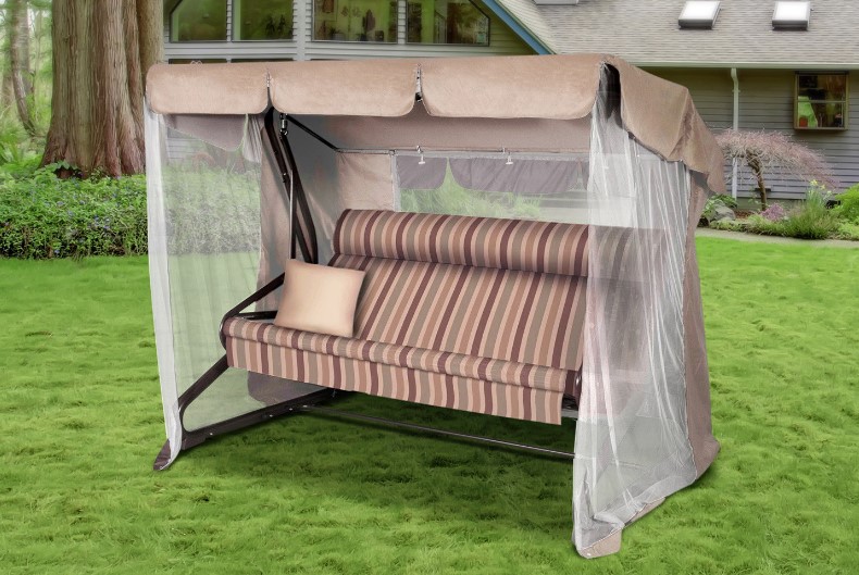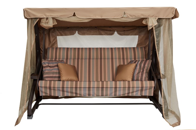 Садовые качели, которые располагаются под открытым небом, обладают огромным количеством преимуществ. Во время отдыха на них можно хорошо расслабиться, особенно это будет актуально после тяжелого напряженного дня. На мягком сидении, облокотившись на подушки, можно почитать книгу, выпить кофе или помечтать. Однако, такие моменты может сильно испортить дождь, либо же палящее солнце. Для того, чтобы этого не допустить, нужно приобрести тент, предназначенный для садовых качелей, благодаря такому тенту отдых будет более приятным и очень комфортным. Такой тент предназначен для того, чтобы защитить человека от небольшого дождя, от солнечных лучей и от насекомых в том случае, если в комплекте идёт москитная сетка. Также тканевое покрытие не будет намокать и выгорать, а качели будут защищены от опавших листьев. Такой тент отлично защищает от осадков, это очень важно, так как краска на металлических опорах может вздуваться и облезать, они сами начинают ржаветь.